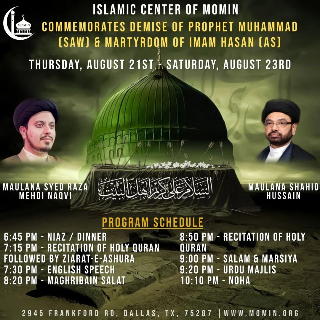 *Islamic Center of MOMIN commemorates the Demise of Prophet Muhammad (SAW) & Martyrdom of Imam Hasan (AS)*
